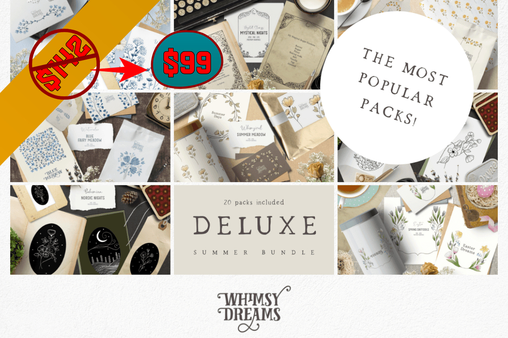 The Deluxe Summer Bundle is now available for $99 This magical collection features 20 hand-drawn sets perfect for a variety of crafting projects.